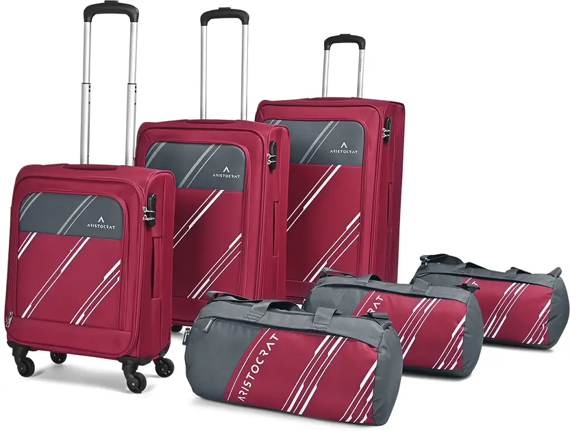 Soft Body Set of 6 Luggage 4 Wheels – HEXA ACTIVE 4W STR CB+MD+LG+3DF RED – Red